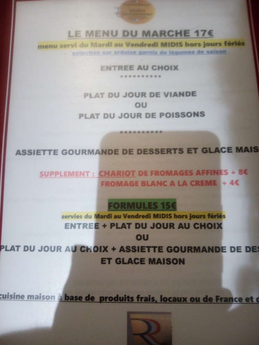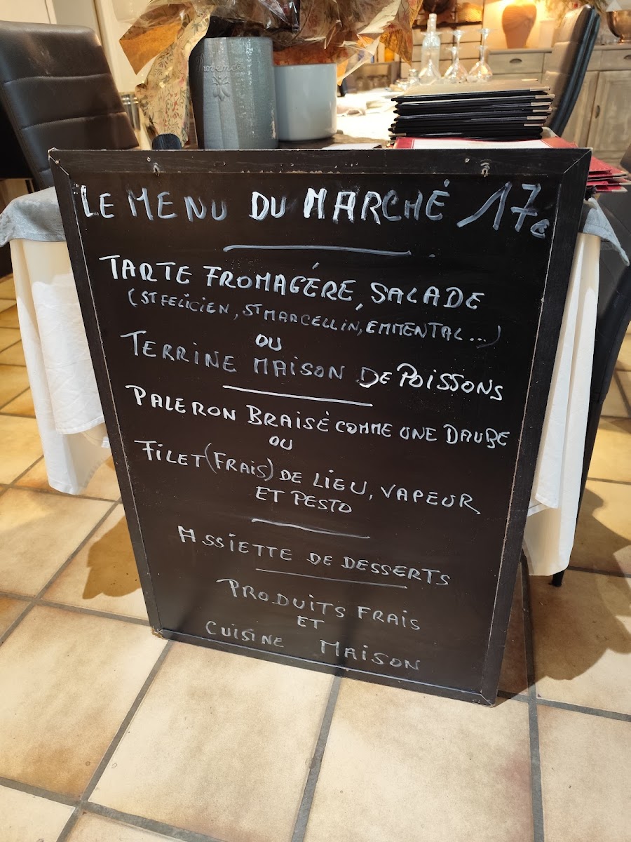 Formules servies du mardi au vendredi midi hors jours fériés. Formule 1 : entrée + plat du jour au choix (poisson ou viande) . Formule 2 : plat du jour au choix + assiette de minis desserts . Formule 3 : entrée du jour en grande assiette + assiette de minis desserts